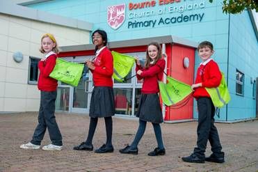 Pupils at Bourne Elsea Park C of E Primary Academy in Bourne have received a donation of hi-vis kit bags from Barratt and David Wilson Homes, to help them shine bright while walking to and from school this winter.