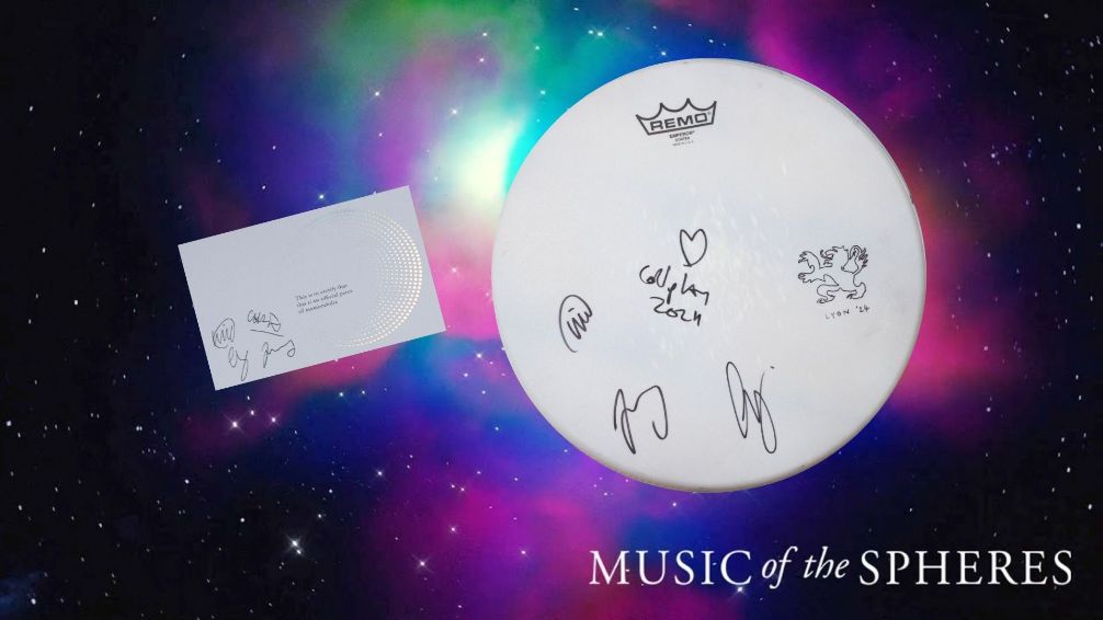 One of the UK’s best-loved bands Coldplay has donated a signed drum skin from its ‘Music of The Spheres World Tour’ to national homelessness charity, Brighton-based Justlife.